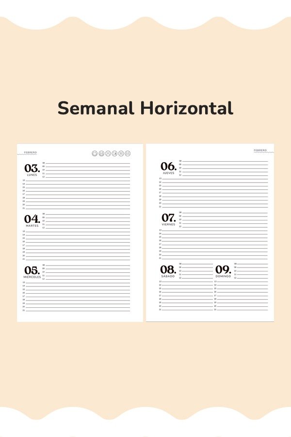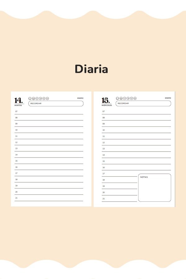 ★ Diagramación de los dias: semana a la vista en forma vertical / horizontal o día por página (elegí la que mejor se adapte a vos)